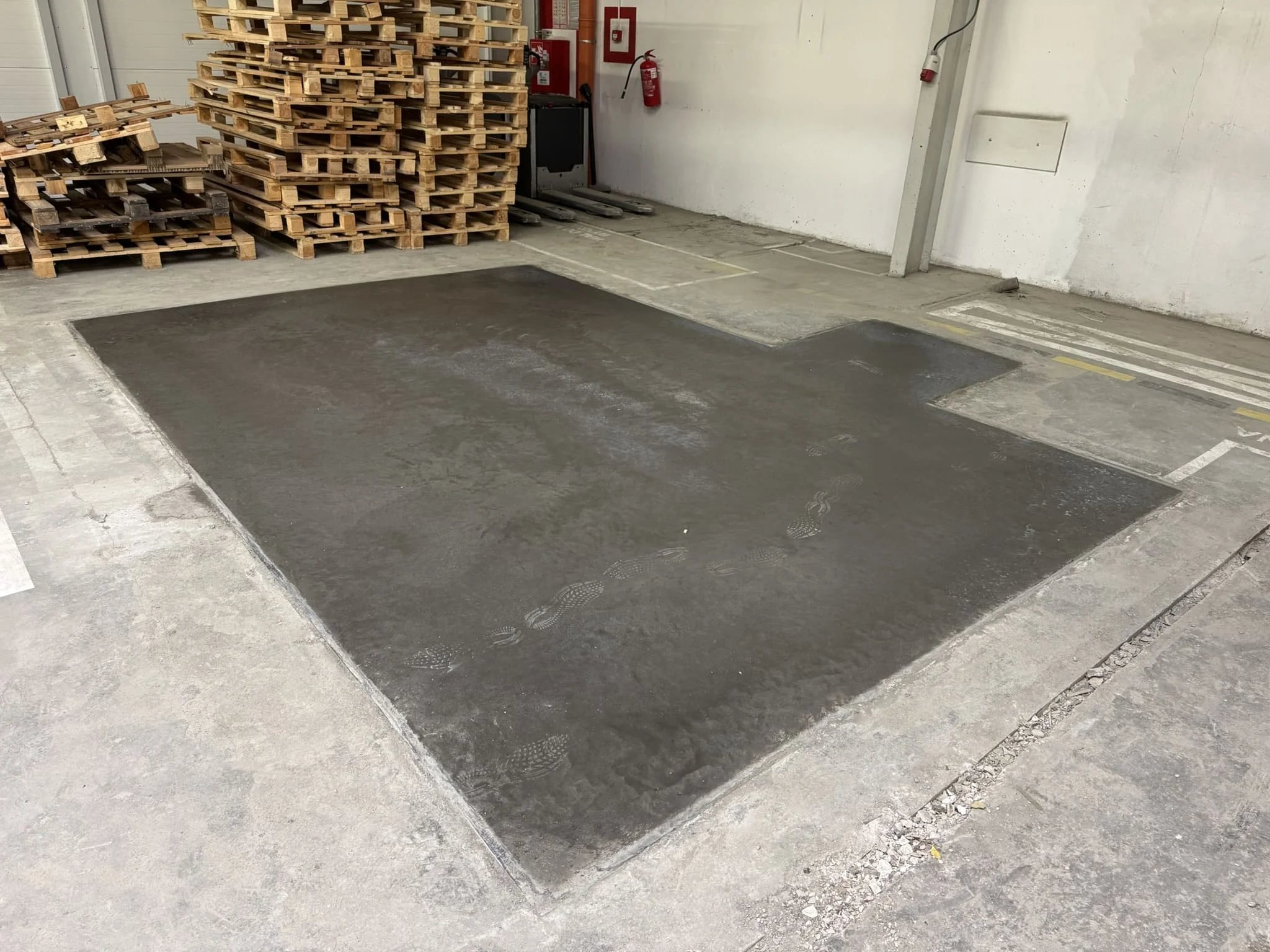 Maintaining production without interruption – we solved this with sectional work and a flexible schedule. Temperature and humidity – we constantly monitored conditions to ensure the thin-layer commercial cement flooring and resin bonded properly.